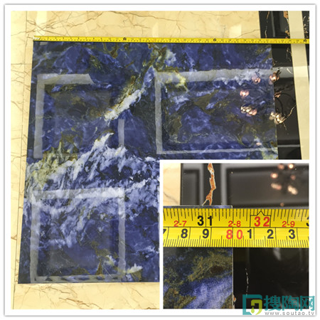 要看企業的制瓷磚工藝是否嚴謹,就要看看其切割技術是否準確、均勻。瓷磚規格不對,有歪斜、缺棱掉角,就會使得貼磚時貼起來縫隙很大。美家測評員拿出標準的卷尺量度瓷磚的規格,確實如資料上所說的800*800mm。