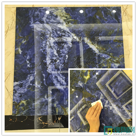 瓷磚的防污性,對于瓷磚的美觀性很重要,防污性能差,就是瓷磚的耐用性差。測評員在瓷磚上用油性筆寫下瓷磚的品牌,靜置了幾分鐘,再拿干紙巾擦拭,瓷磚上幾乎不留痕跡,說明梵香通體大理石瓷磚的防污性能不比大理石瓷磚差。