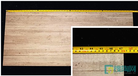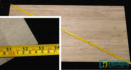 小編拿來卷尺測量了此款瓷磚的規(guī)格,測量結(jié)果:長600mm,寬1200mm,對角線長134.1mm,與商家給出的尺寸相符。按照8長方形計算,對角線應(yīng)該是134.128mm。尺寸數(shù)據(jù)與實際測量數(shù)據(jù)相符,是一款規(guī)格正式的好產(chǎn)品。