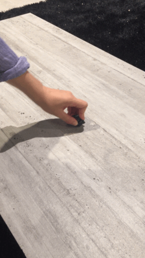 小編用了專業(yè)礦物硬度標(biāo)本(即莫式硬度計)10度(最高度!)的礦物硬石用力在這款瓷磚表面來回滑動后仔細觀察,瓷磚表面同樣沒有留下任何的痕跡,證明這款卡薩龍真真是夠硬!