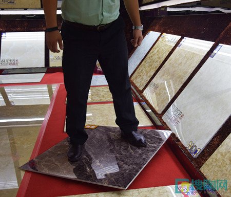 良好的抗壓性,能防止出現裂痕和容易受到較重的物品擊碎。對于選購家居使用的瓷磚也是非常重要的考慮因素之一。為此小編這次采用了比較特殊的方式來測試,測評員把瓷磚以單角獨撐的方式放置,并請現場的一位稍健碩的工作人員站上去,瓷磚沒有出現開裂的現象。說明這款瓷磚抗壓性還是經受得起考驗的。