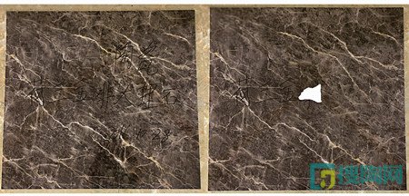 測試瓷磚的耐磨度,小編用了專業礦物硬度標本(即莫式硬度計)7度的礦物硬石用力在這款瓷磚表面來回滑動后仔細觀察,瓷磚表面同樣沒有留下任何的痕跡,這款荷蘭金啡大理石瓷磚的耐磨性非常不錯。