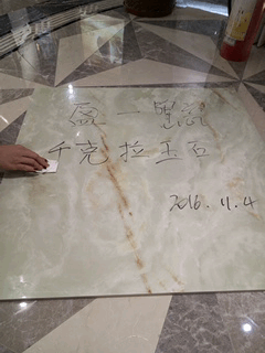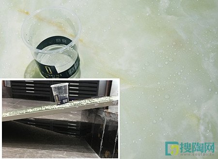 不易吸水的瓷磚會(huì)更加防潮以及更加防止瓷磚的脫落。下面來(lái)測(cè)試此款瓷磚的吸水性,將瓷磚翻轉(zhuǎn)過(guò)來(lái),測(cè)評(píng)人員在瓷磚背面畫了個(gè)圈,再往圈內(nèi)倒點(diǎn)水,發(fā)現(xiàn)水并沒(méi)有向圈外擴(kuò)散的現(xiàn)象,稍等一會(huì)放了張紙巾,此時(shí)圈內(nèi)的水立即被紙巾吸收了,實(shí)驗(yàn)證明,這款瓷磚吸水率低,是一款不易吸水的瓷磚。