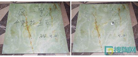 我們先用油性水筆在瓷磚的表面上寫字,靜待字跡干爽后嘗試使用紙巾擦拭,測(cè)評(píng)人員只是輕輕的擦拭,筆跡就幾乎全無(wú)了。再細(xì)看下幾乎沒(méi)有痕跡,考驗(yàn)完美過(guò)關(guān)。