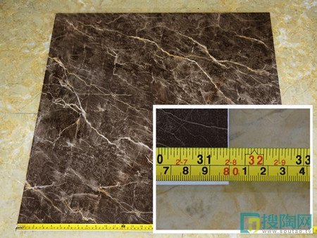 小編拿來卷尺測量了這款荷蘭金啡大理石瓷磚的規格,測量結果:邊長800mm,對角線長1131mm,與商家給出的尺寸相符。按照800mm*800mm的正方形計算,對角線應該是1131.3708mm。尺寸數據與實際測量數據準確無誤,是一款規格正式的好產品。