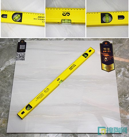 平整貼服的瓷磚,使家居裝修后的墻面或地面平整貼服,成水平線狀態(tài),更好地展現(xiàn)裝修效果。在測量瓷磚的平整度時(shí),測評員把水平尺放在瓷磚上,水平儀觀察窗中氣泡居中無偏移,水平角度值為180°。另外,邊角線條也十分垂直緊貼磚體,邊角為90°直角,經(jīng)測試得出上圖的結(jié)果,均未超出標(biāo)準(zhǔn)范圍,平整度過關(guān)。