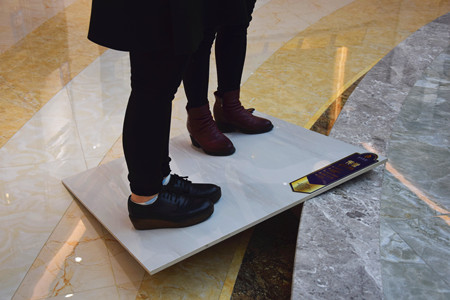 瓷磚良好的抗壓性,能防止出現(xiàn)裂痕和容易受到較重的物品擊碎。對于選購家居使用的瓷磚也是非常重要的考慮因素之一。為此小編這次采用了比較特殊的方式來測試,測評員把瓷磚以單角獨(dú)撐的方式放置,同時(shí)讓兩名工作人員站在瓷磚上面,瓷磚沒有出現(xiàn)開裂的現(xiàn)象。經(jīng)測試證明這款瓷磚抗壓性非常好,即便獨(dú)角支撐也能通過考驗(yàn)。