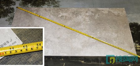 在現(xiàn)場,測評人員對協(xié)進陶瓷的這款悉達屋現(xiàn)代仿古磚---原始水泥系列進行了現(xiàn)場測量,根據(jù)協(xié)進陶瓷提供的參數(shù),我們用標準軟尺量度了產(chǎn)品規(guī)格,得出結(jié)果是瓷磚的規(guī)格是600*1200mm,對角線為1343mm。尺寸數(shù)據(jù)與實際測量數(shù)據(jù)準確無誤,是一款規(guī)格正式的好產(chǎn)品。