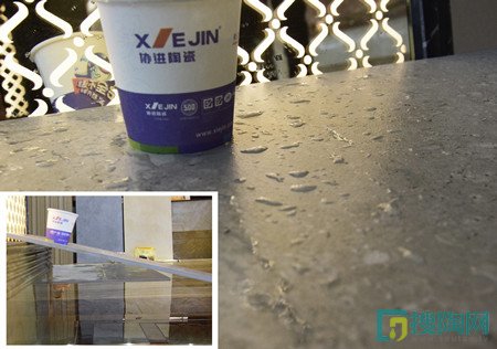 我們的測評員也對該款產(chǎn)品的防滑性進行了測試,把瓷磚傾斜擺放20cm左右,隨后在瓷磚表面灑滿水,把裝有水的杯子放在瓷磚上,觀察幾分鐘,可以看到水珠依然清晰可見,同時也沒出現(xiàn)水杯在瓷磚上滑行的現(xiàn)象,證明了這款瓷磚防滑性能極佳。