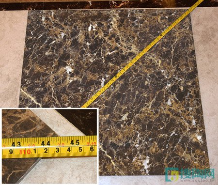 小編拿來卷尺測量了這款西班牙深啡網(wǎng)大理石瓷磚的規(guī)格,測量結(jié)果:邊長800mm,對角線長1131mm,與商家給出的尺寸相符。按照800mm*800mm的正方形計(jì)算,對角線應(yīng)該是1131.3708mm。尺寸數(shù)據(jù)與實(shí)際測量數(shù)據(jù)準(zhǔn)確無誤,是一款規(guī)格正式的好產(chǎn)品。