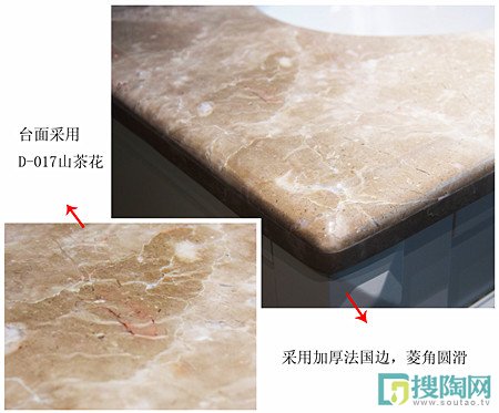 這款F-7281貝弗利系列臺面選用D-017山茶花,使用進口天然大理石經過先進的加工技術,臺面均是光滑如鏡,紋理逼真、獨一無二,高端進口的天然石材觸感細滑,有種溫潤的冰涼感,紋理自然流暢。高檔奢華,是浴室的吸金法寶。