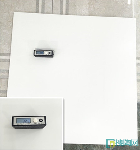 通過光澤儀測試,在瓷磚表面移動不同的位置測試,最后結果為多個位置光澤度的平均值,測試結果為32.5。光澤度在柔光石產品之中是相當不錯的。