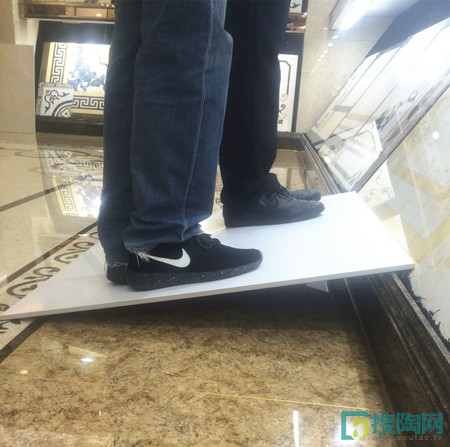 瓷磚的硬度是衡量一塊瓷磚質量好壞的重要指標。瓷磚良好的抗壓性,能防止出現裂痕和容易受到較重的物品擊碎。對于選購家居使用的瓷磚也是非常重要的考慮因素之一。把瓷磚傾斜擺放20cm,然后讓兩名成年人體重超過140Kg的站在上面,瓷磚表面并沒有發現任何異常,這說明該瓷磚的抗壓性能非常好。