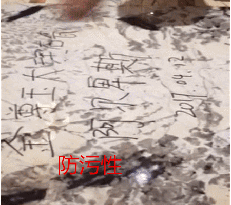 良好的防污性能使瓷磚歷久常新,方便清潔,省時省力。小編用水性筆在瓷磚表面寫上幾個字后靜置幾分鐘,后用餐巾紙擦除,瓷磚表面依舊光滑亮麗。輕輕的動作便可讓瓷磚恢復光潔,由此可見, 金尊玉大理石瓷磚“阿爾卑斯”防污性能良好,更易于家庭日常清潔。