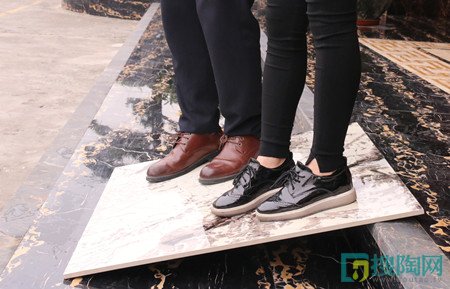 瓷磚的抗壓性,若達不到國家標準的要求,使用過程中會造成瓷磚的開裂、斷裂,影響使用。小編先把瓷磚傾斜放置,然后邀請了兩位成年人站在瓷磚上面,
