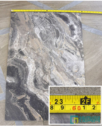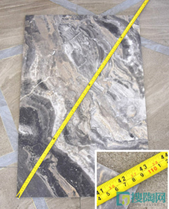 測評員拿來卷尺測量了該款威尼斯棕的規(guī)格,測量結(jié)果是邊長600mm,900mm,對角線長1081mm,尺寸數(shù)據(jù)與實(shí)際測量數(shù)據(jù)準(zhǔn)確無誤,是一款規(guī)格正式的好產(chǎn)品。