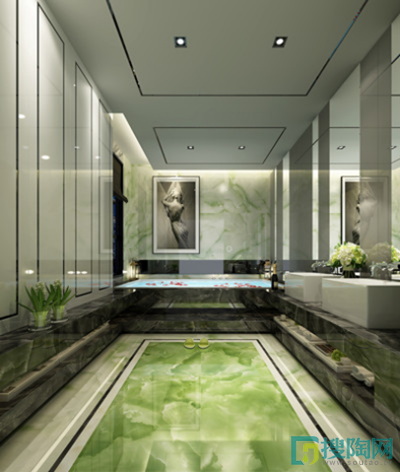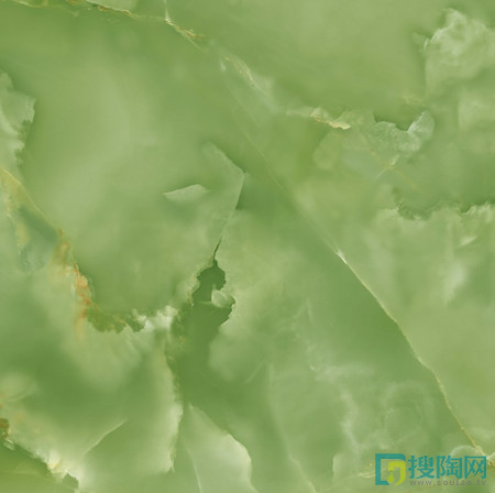 卡布里·玉石瓷磚“君臨天下”取材于玻璃種帝王綠,是翠中極品。利用智能溫控技術,優化特殊晶層與紋理層的熔結固化狀態,使得熔晶面層擁有極佳的透潤度,把翡翠的種水做成更通透更溫潤