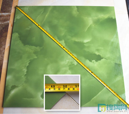 測評人員用標準軟尺進行了規格測量,測量結果顯示該磚規格是900mm×900mm,對角線為1272mm,做工與規格精準、分毫不差,是一款規格標準的好產品。