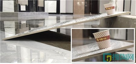 瓷磚的防滑性能是消費者選購瓷磚的重要因素之一。它關系到人走在上面是否安全,家中有小孩或老人的家庭會更加重視。美家網測評小組將瓷磚置于不低于45度角的坡面上,在其表面撒上大量的水,確保表面絕對潮濕。然后將裝滿水的水杯置于瓷磚表面,經過五分鐘的觀察,發(fā)現紙杯紋絲不動,并沒有出現滑落的情況。由此可見,這款產品的防滑性能值得信賴。