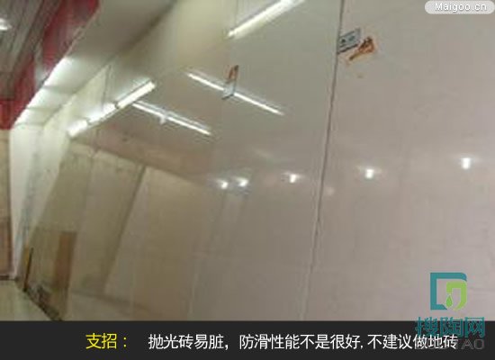 拋光磚就是通體磚坯體的表面經過打磨/拋光處理而成的一種光亮的磚,屬于通體磚的一種。相對通體磚而言,拋光磚的表面要光潔得多。拋光磚堅硬耐磨,適合在除洗手間、廚房以外的多數室內空間中使用。在運用滲花技術的基礎上,拋光磚可以做出各種仿石、仿木效果。拋光磚易臟,防滑性能不很好。