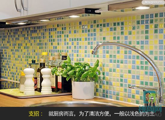 瓷磚種類非常的多,顏色也比較的多,但是需要把握的是所選擇的顏色和款式是否滿足使用要求。比如廚房一般來說,為了清潔方便,一般以淺色的為主,最常見的白色的瓷磚。衛生間的瓷磚選擇亮光或者啞光、深色或者淺色都是推薦的。家庭裝修時,最好選擇亞光磚;書房和兒童房盡量用地板代替地磚;如果使用了拋光磚,平時家中盡量開小燈,還要避免燈光直射或通過反射影響到眼睛;由于白色和金屬色瓷磚反光較為強烈,不適合大面積在居室使用。
